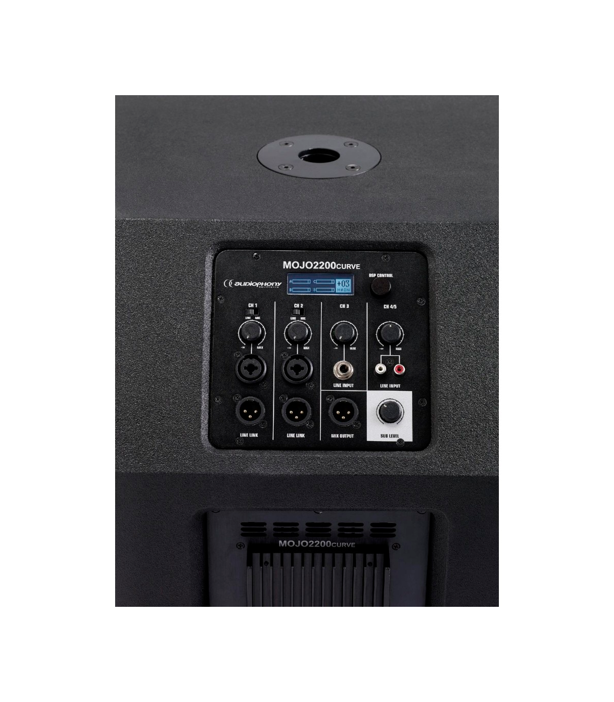 Este último aloja amplificación de clase D con todas las protecciones, un mezclador de 4 entradas con