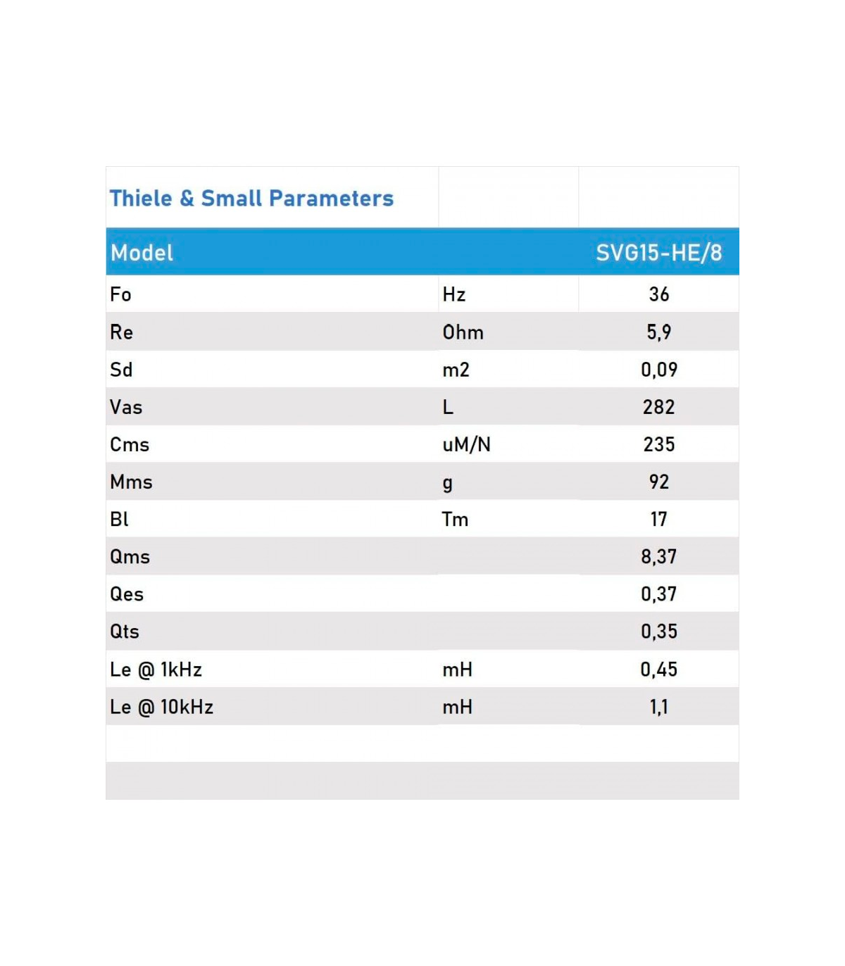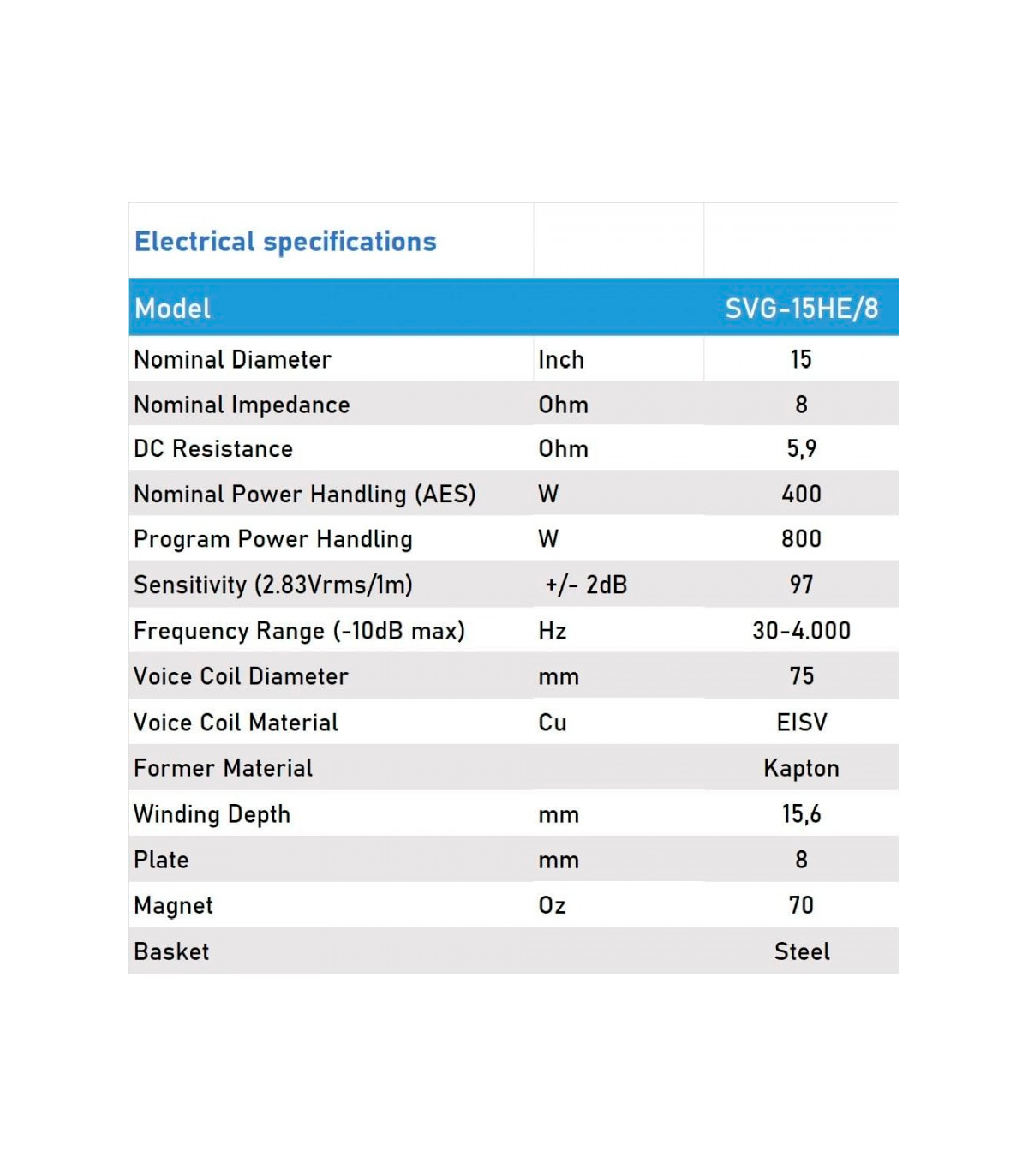 Seven Soundvector SVG-15HE Woofer 15" - 8 ohm, Woofer Profesional de Grave Medio-Grave 8 Ohm 400W AES 800W Programa.