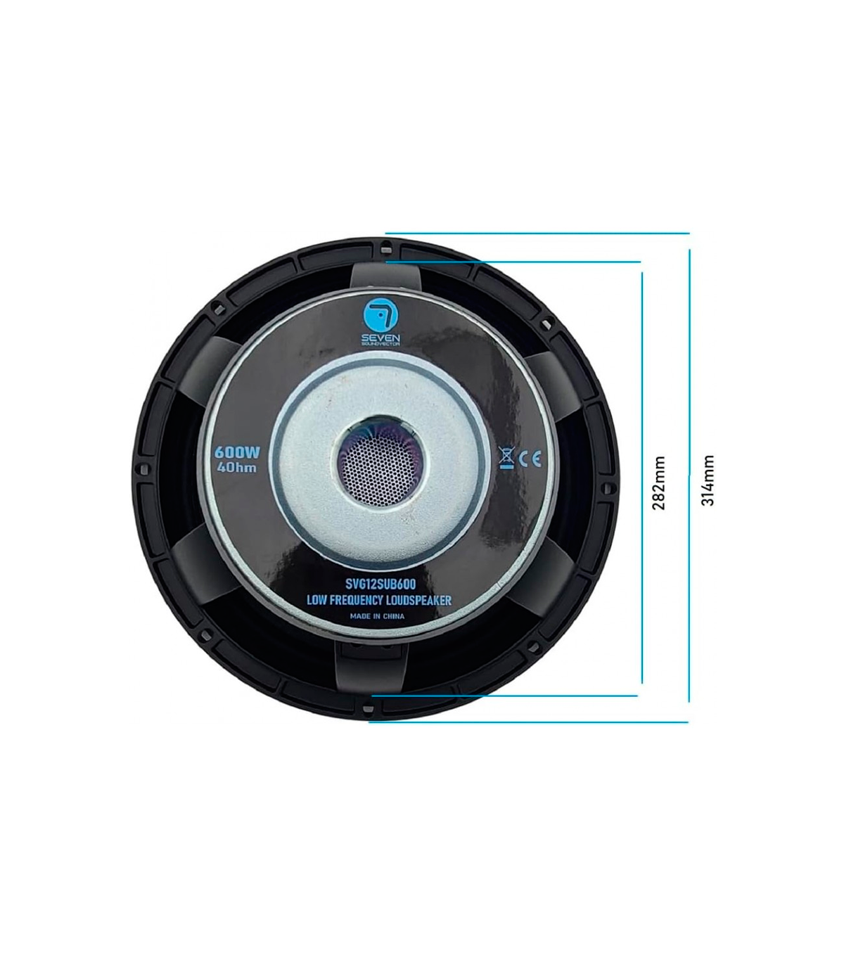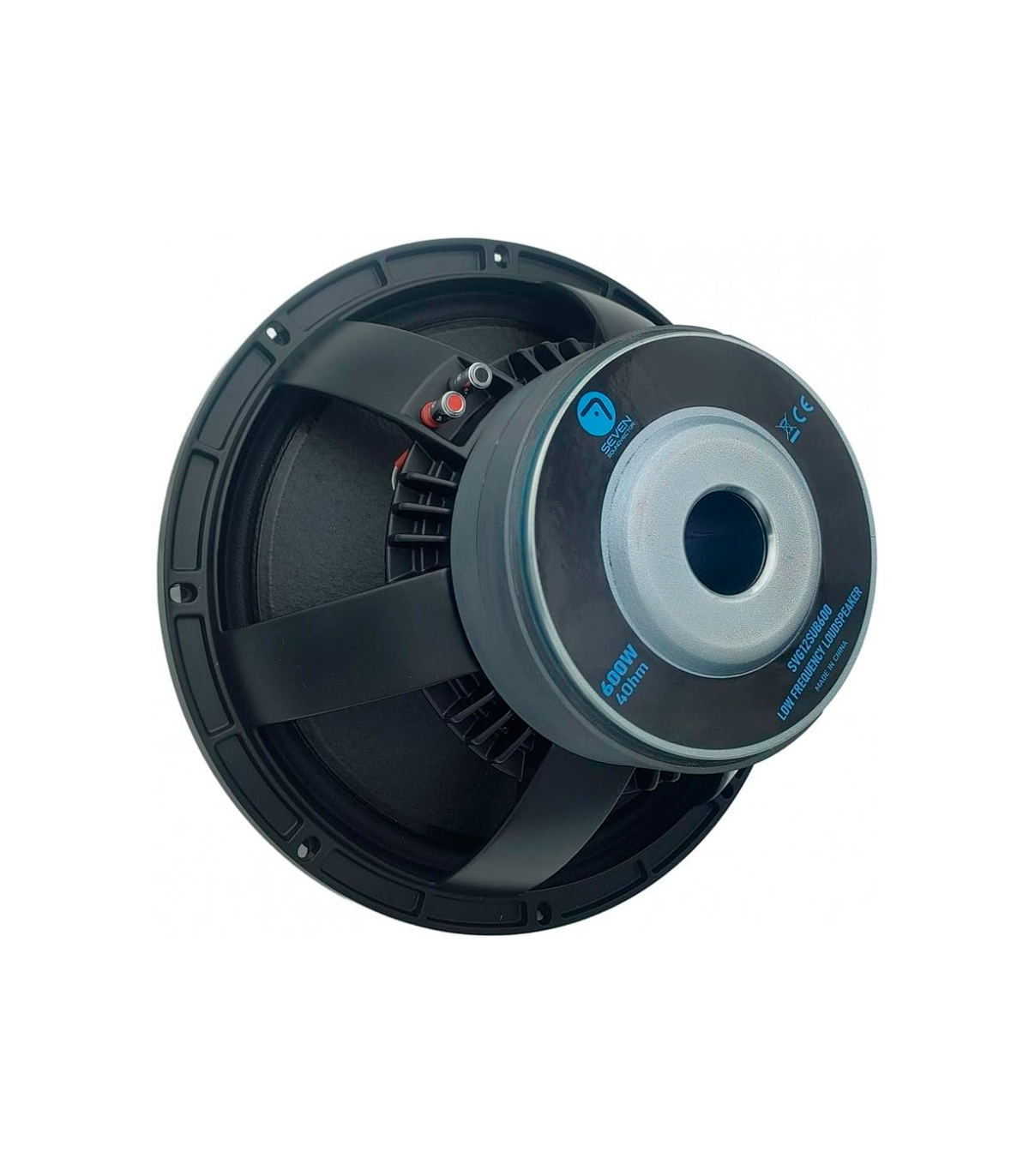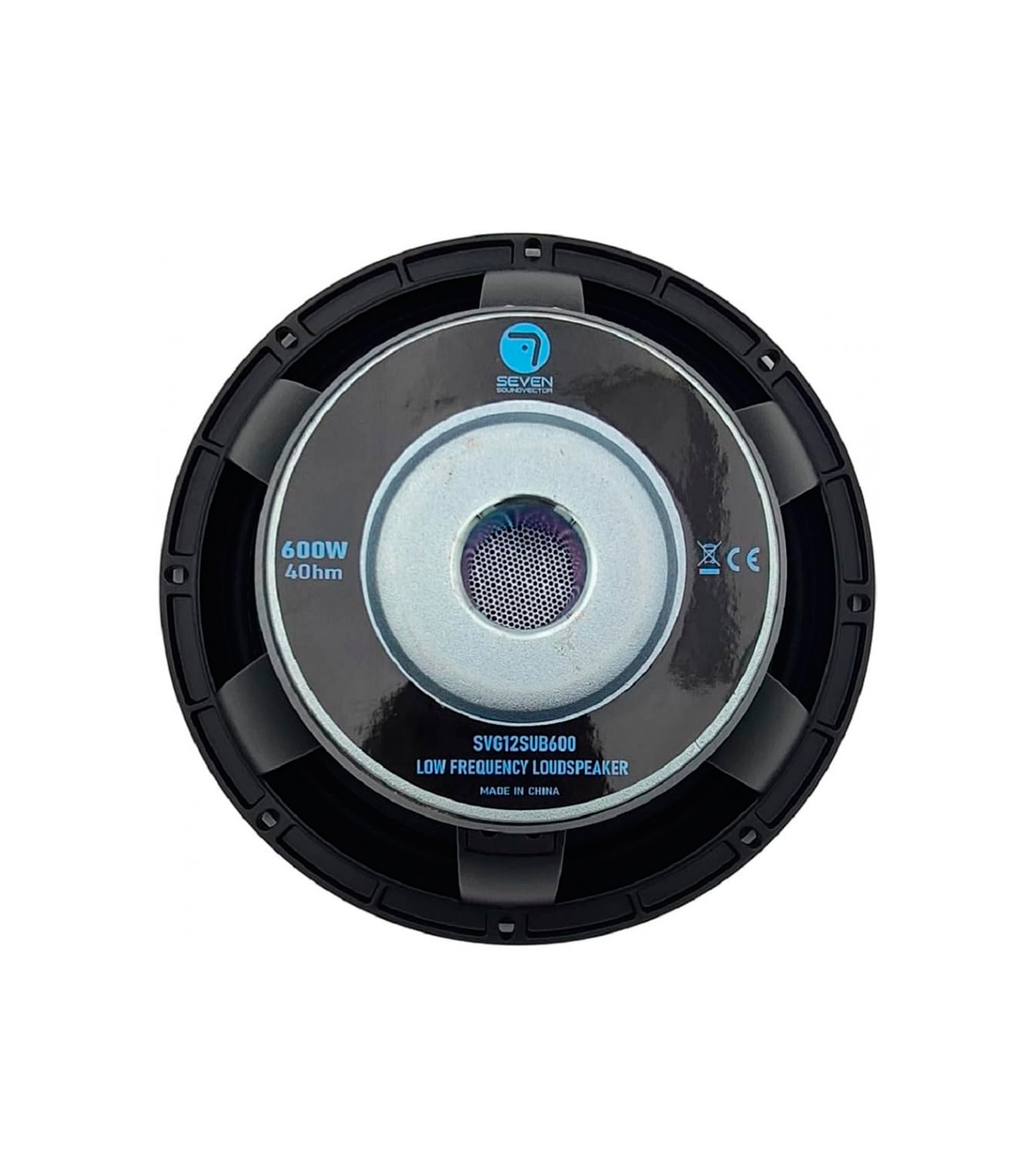 Seven Soundvector SVG12SUB600/8, un subwoofer de 12 pulgadas diseñado para ofrecer potencia constante y fiabilidad.