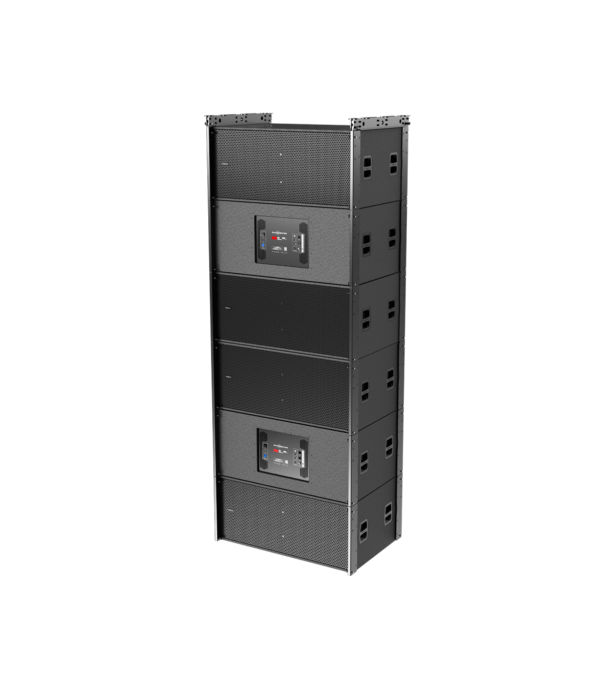 y configuraciones de conjuntos de altavoces a gran escala. Permite suspender hasta 12 altavoces, lo que proporciona