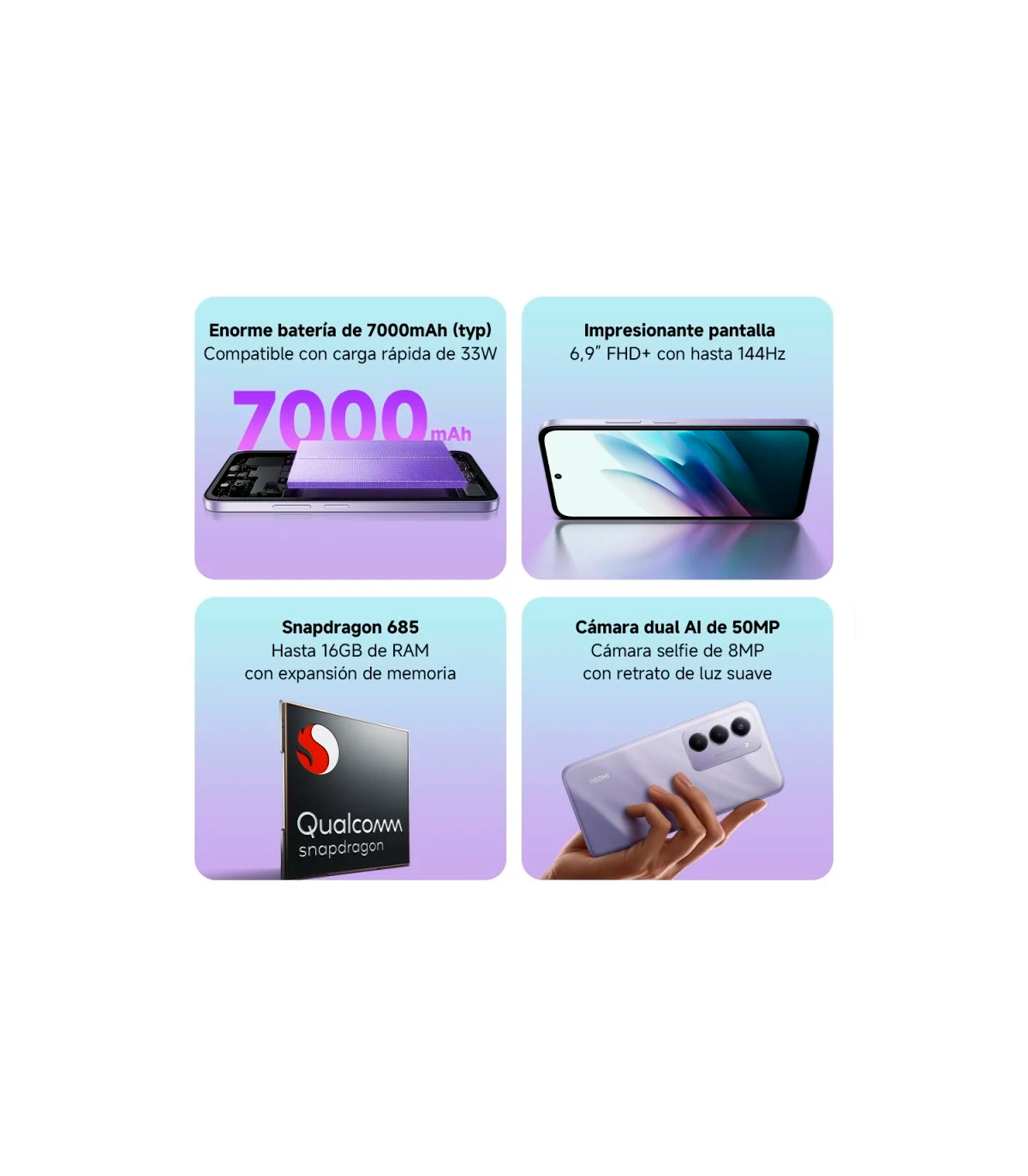 | Contenido de la caja | Redmi 15 4G, cable USB-C, manual usuario, pin SIM |